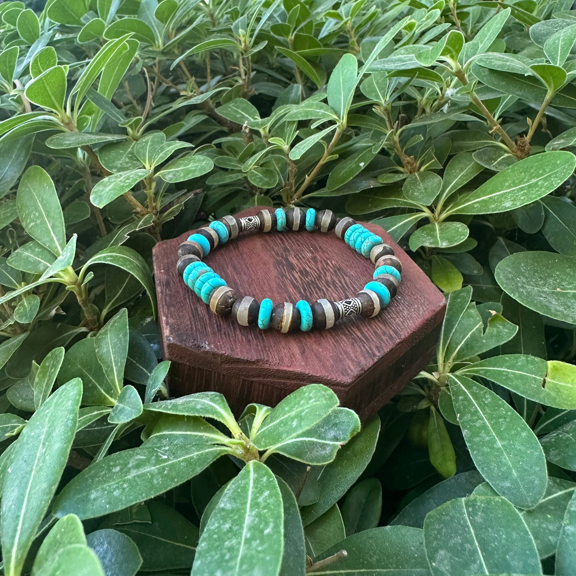 Crafted for bold spirits who seek more than just a bracelet, this piece fuses the timeless beauty of Tibetan agates, the vibrant energy of turquoise, and the protective power of traditional sterling silver. Designed to connect you to your origins while making a statement of authenticity and strength.